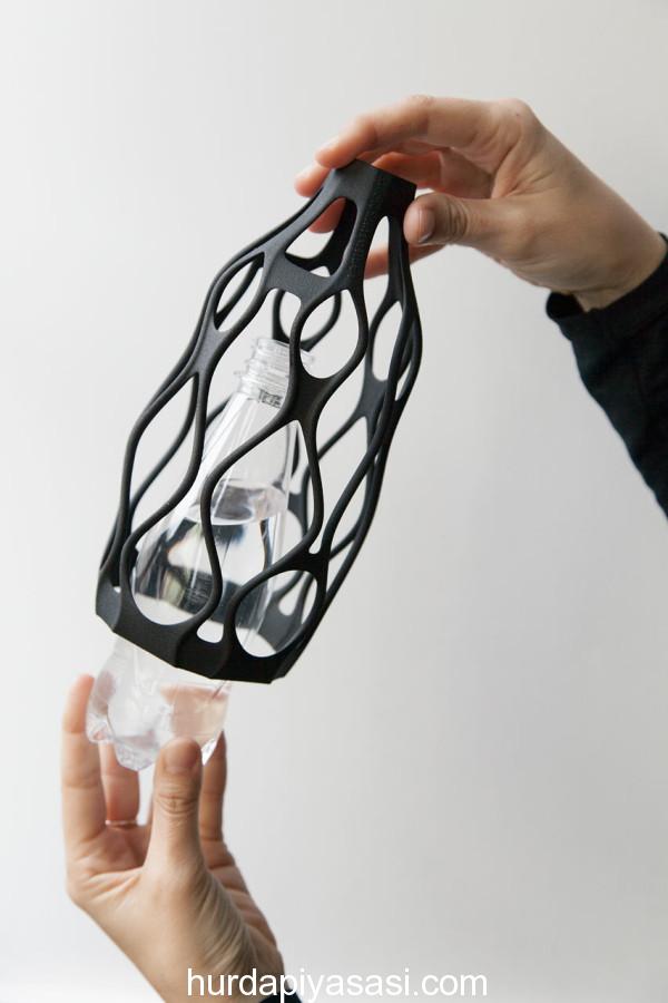 Vazonun olmadığı acil durumlarda şişeler kurtarıcı rolü üstlenir. Tamam, belki hepsi güzel görünmez ama en azından çiçeği canlı tutmaya yeter. Eski şişeler birçok şekilde geri dönüşüm projelerinde yer buluyor ancak başka bir materyalle birleşince hayatımızdaki yeri bir anda değişiyor. 3B baskının nimetleriyle geri dönüşüm gibi ulvi bir amaç birleşince de işte böyle bir çalışmayla karşılaşmış oluyoruz. DesignLibero’nun Milano merkezli tasarımcısı Libero Rutilo, pet şişelere ikinci bir yaşam şansı vermek için bir proje geliştirdi. Eski şişeleri geri dönüştürerek 3B baskı teknolojisi birleştiren Rutilo, kafes görünümlü vazolar yarattı. Böylece çöpe gidecek olan sıkıcı bir şişe bir anda hayatın bir parçasına dönüşmüş oldu.
